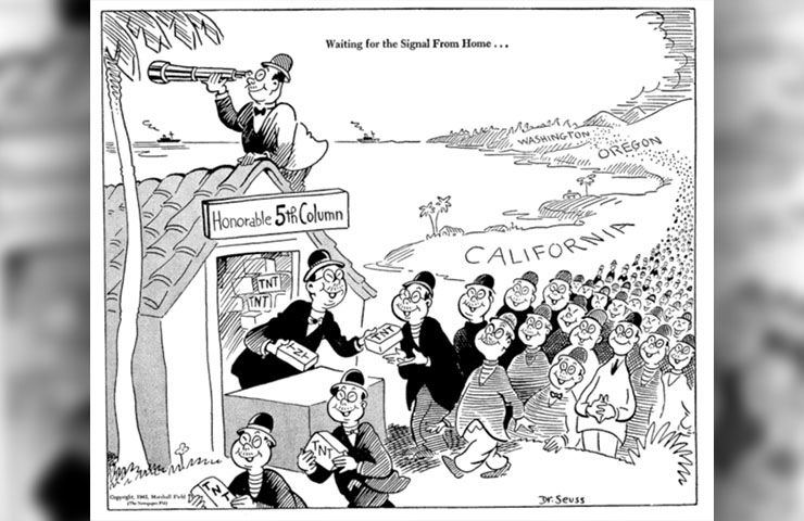 During World War II, Seuss was asked to write propaganda for the US government. This included a number of derogatory cartoons depicting Japanese-Americans. His work played into the paranoia of the time and on the existing stereotypes about them. People were afraid of the Japanese after Pearl Harbor and Seuss’ comical, sometimes scary images cemented that fear.